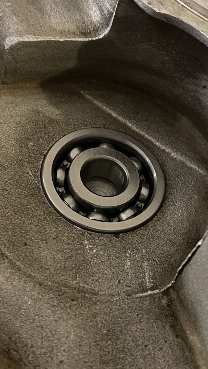 Zum Einbau die Lager über Nacht ins Gefrierfach, die Gehäusehälfte bei etwa 130 Grad im Backofen erwärmen, dann kannst Du die Lager einfach in die Lagersitze legen.