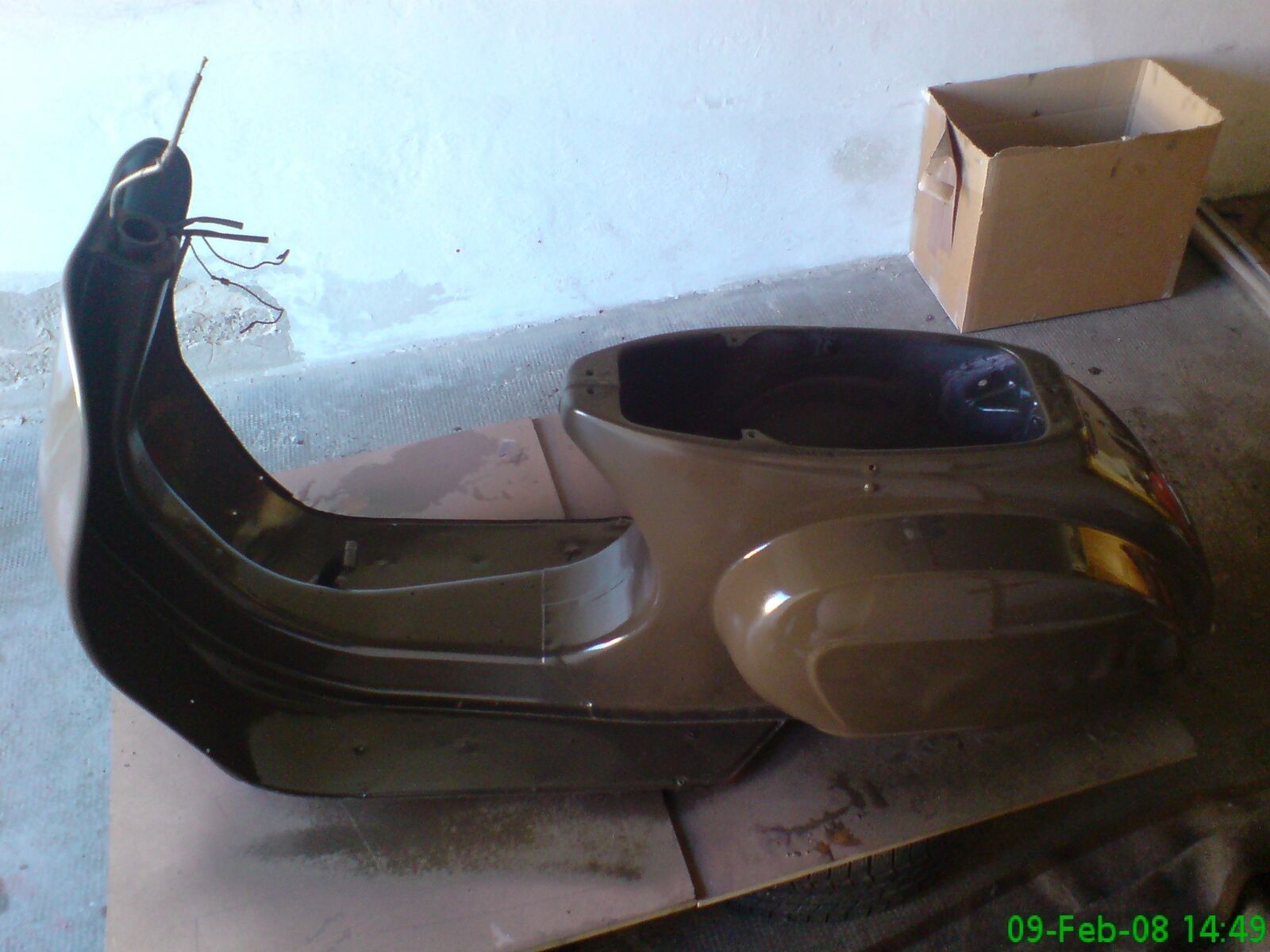 Meine Vespa wurde irgendwann mal von einem Idi.... sehr schlecht lackiert und ein Weiterer hat Fußmatten auf die Fußleisten geklebt, damit diese auch noch mehr rosten können. Die Lackierung wurde meines Erachtens damals per Sprühdose gemacht mit einer Farbe, die eigentlich gar nicht so schlecht ist, jedoch nicht wiederzufinden sein wird.