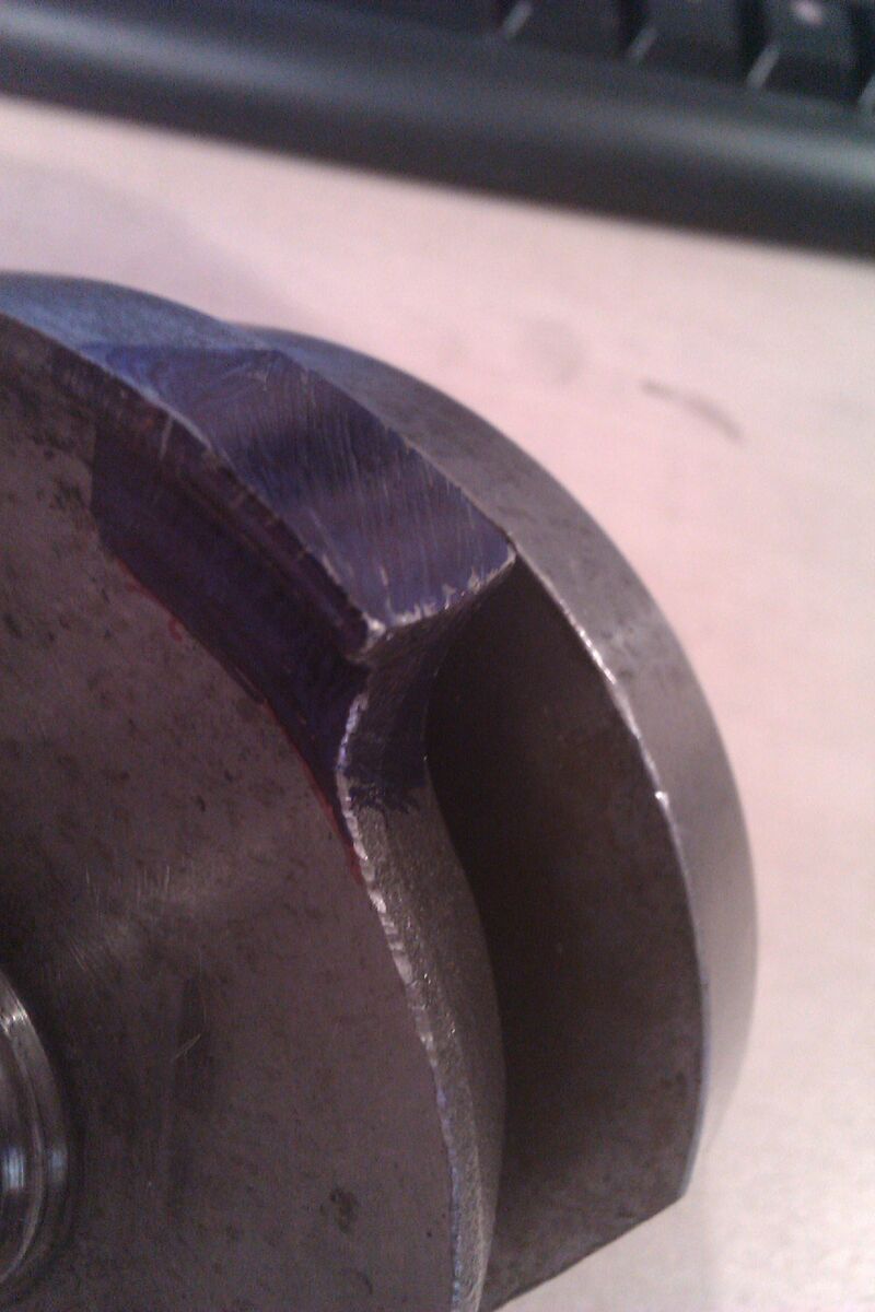 Verrunde noch schön am Einlass, aber so, dass noch ca 1,5 mm vom Drehschieber stehen bleiben.
