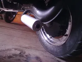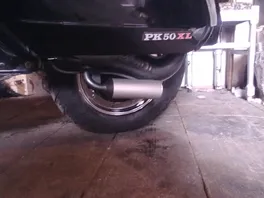 Mein Auspuff (Polini Schnecke) schleift am Reifen. Wo ich ihn druntergebaut habe, war zwar wenig Platz zwischen Auspuff und Reifen doch immerhin war er da