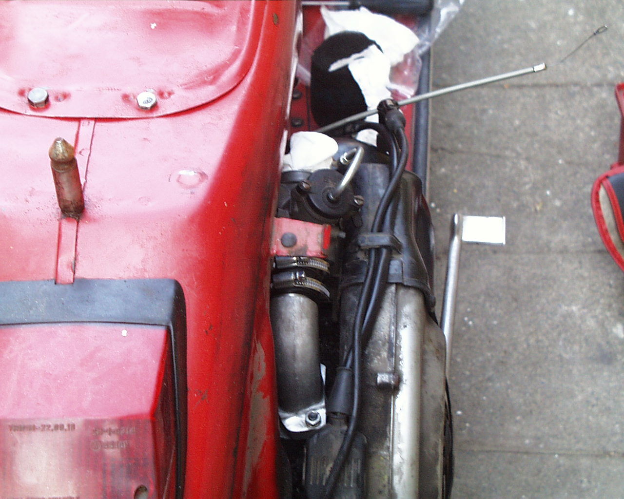 Auspuff geht so schon,der Gaser steht schon arg am Rahmen an.Wenn du da zu zweit über ne Bodenwelle dübelst.......event nen längeren Verbindungsgummi verwenden.Ich nimm da immer nen Kühlerschlauch von Auto her.Der PH kommt auch mit ein bischen Schrägstellung gut zurecht,Gaszugkrümmer sollte entweder gebogen oder nen neuen verwendet werden