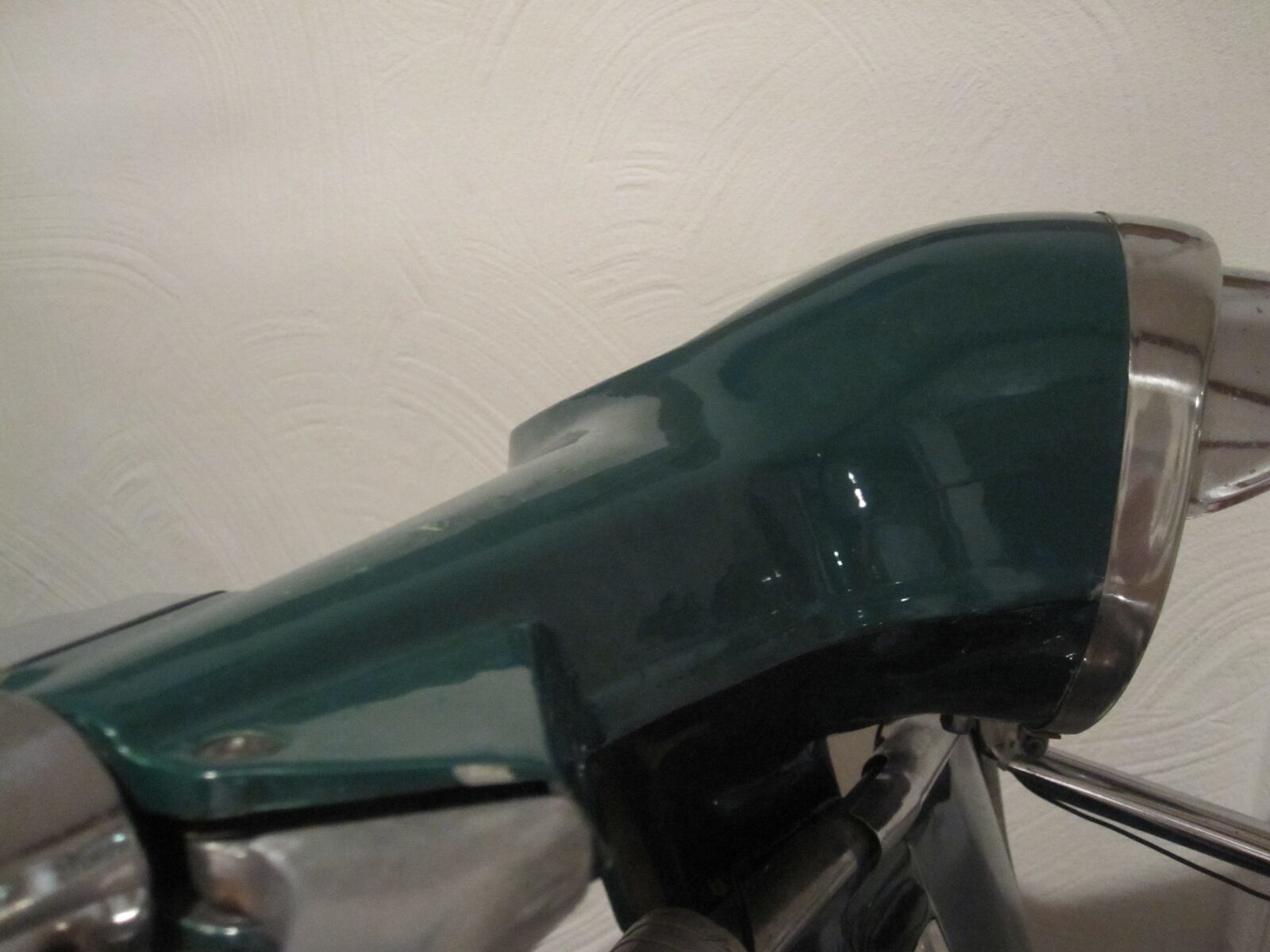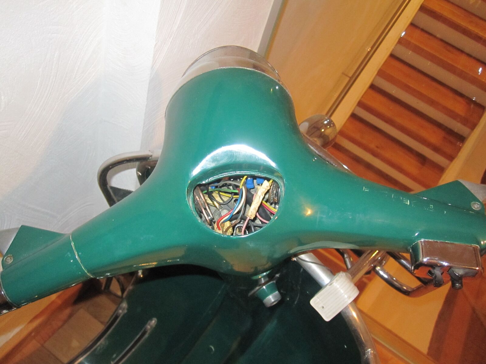 wer kann mir sagen um welchen Lenker es sich handelt (s. Fotos)? Er ist zwar z. Zt. auf einer V50 mit nicht originalem Schirmchen montiert, ist aber von einem anderen Modell. Ich konnte nur bisher nicht klären, von welchem. Das Tacholoch ist ca. 8cm breit und ca. 6,2 cm hoch. Der Scheinwerferdurchmesser beträgt ca. 12,5cm. Der Lenker stammt ursprünglich aus Italien.
