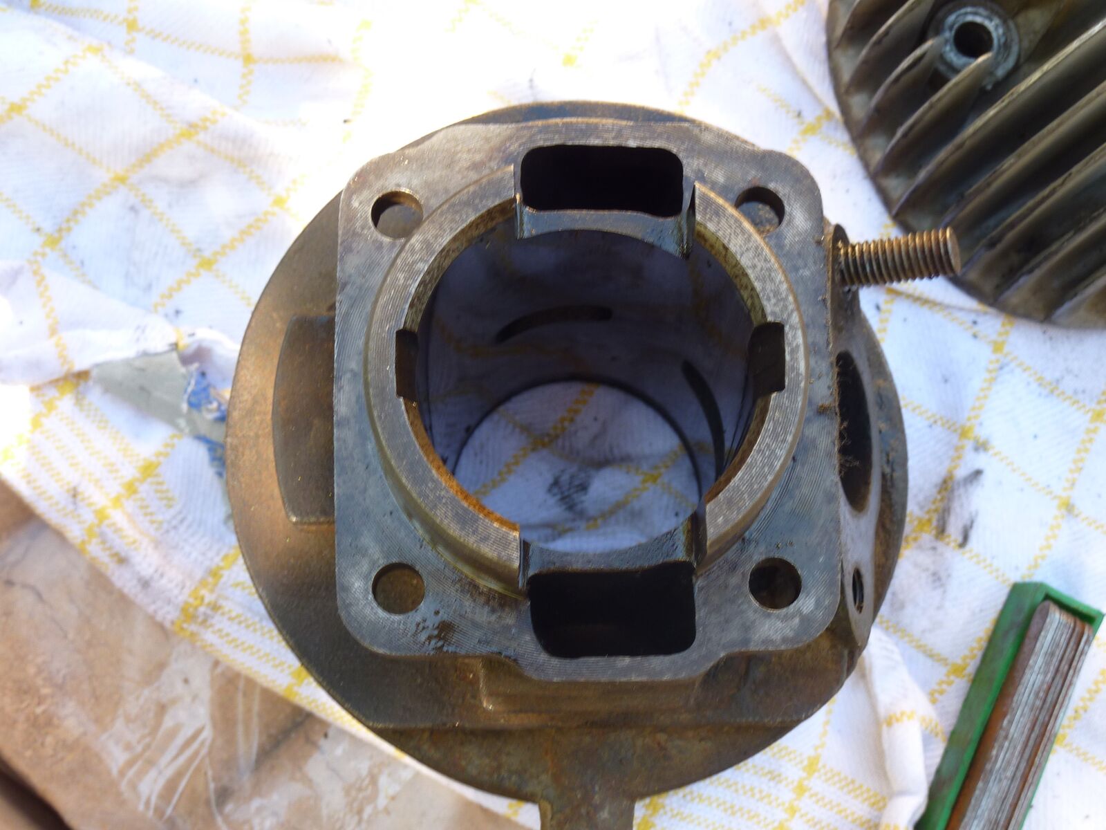 • Zylinderabdeckung runter , die 4 Kopfmuttermn öffnen , kopf abziehen und den innendm messen --> 75cm³ haben 47mm dm , 85cm³ = 50mm , 102cm³ = 55mm
