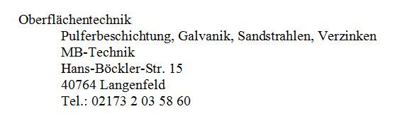 Edit sagt: Miese Eigenwerbung für MB-Technik, wenn man sein eigenes Gewerk nicht buchstabieren kann (PulFerbeschichtung).