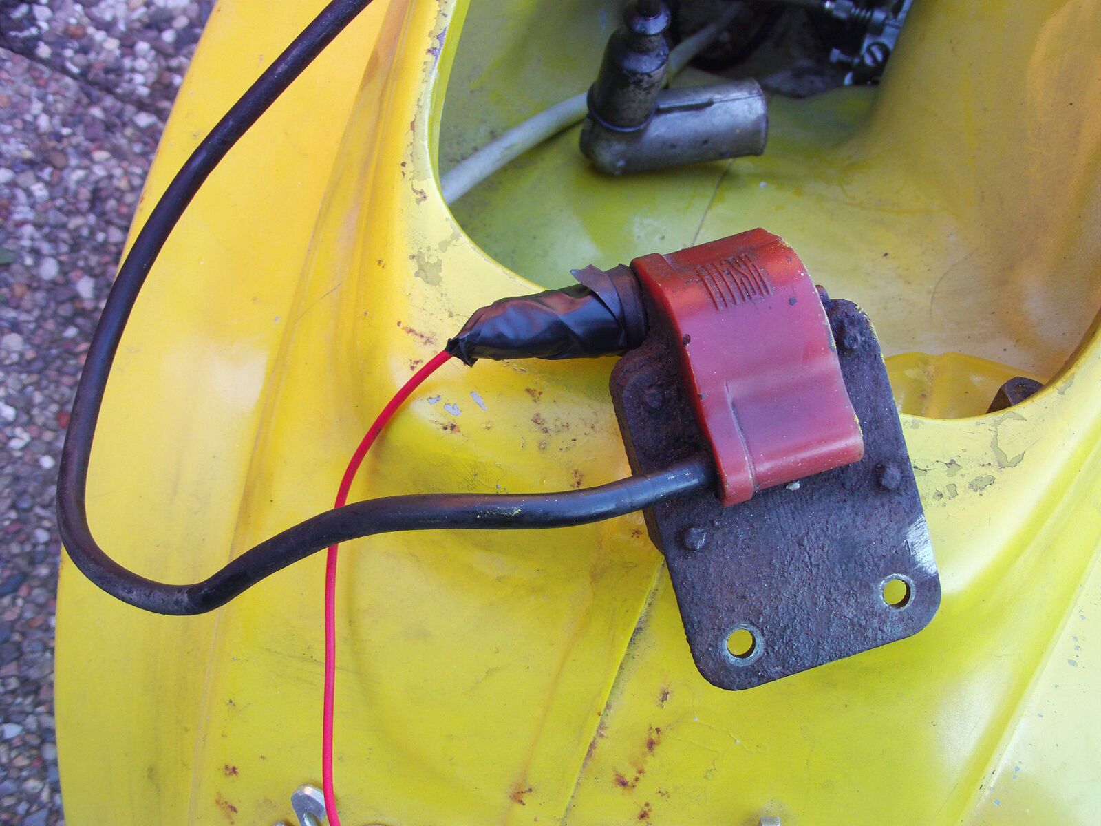 naja ich schildere jetzt mal genaueres ich fange mal hinten an ^^ also wenn man in den verteilerkasten guckt fürt ja dieses besagte kabel zu zündspule.... und der kontakt IN dem kasten ist ZWISCHEN zwei anderen kontakten in der box.. wofür die sind weiß ich allerdings auch nicht... naja ich habe ihn neu dran gemacht mit kabel ( Das rote auf dem Bild ) eben... und habe ihn OBEN drauf geschraubt.. wen ihr versteht was ich meine.... macht das einen unterschied???