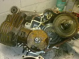 die kupplung wird morgen auch aufgebort da die auch total verostet ist ,,,,,was ich sicher brauchen kann sind die zahnräder und die motorenhälften sonst alles fürn müll