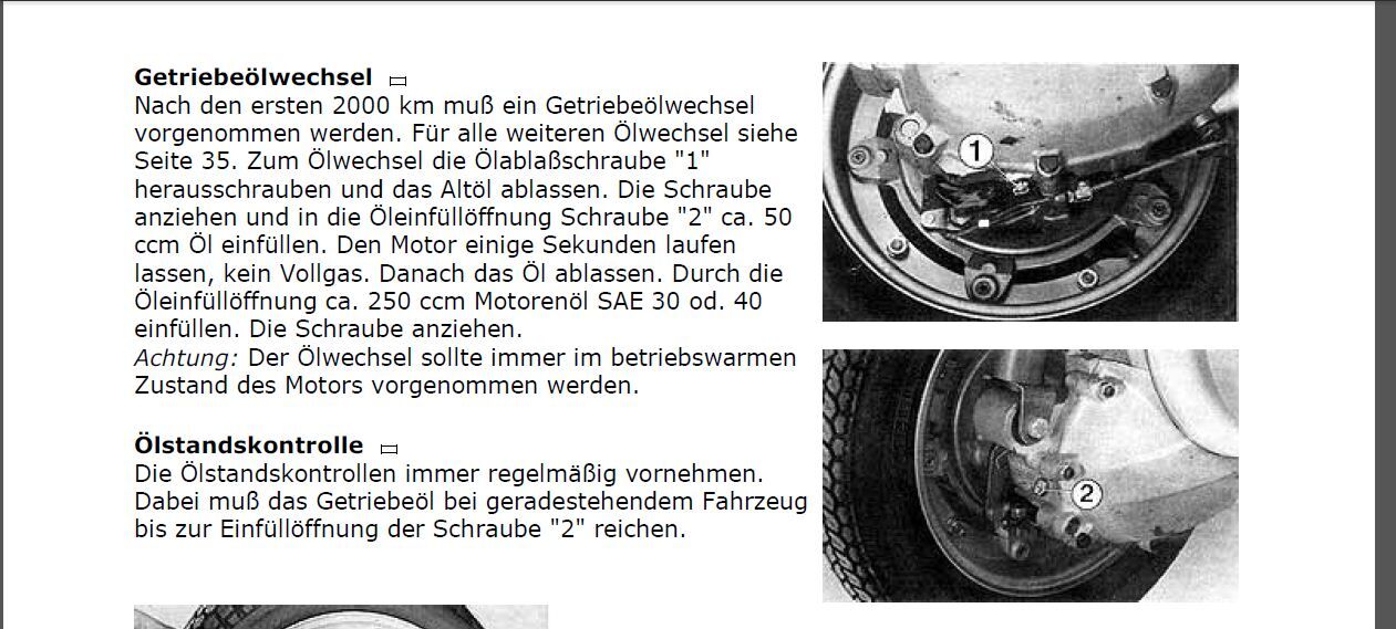 Soll heißen, hat man nur die Möglichkeit bei der Vespa das Getriebeöl zu wechseln, oder gibt es noch weitere Schrauben am Motor für das Wechseln von Motoröl ???