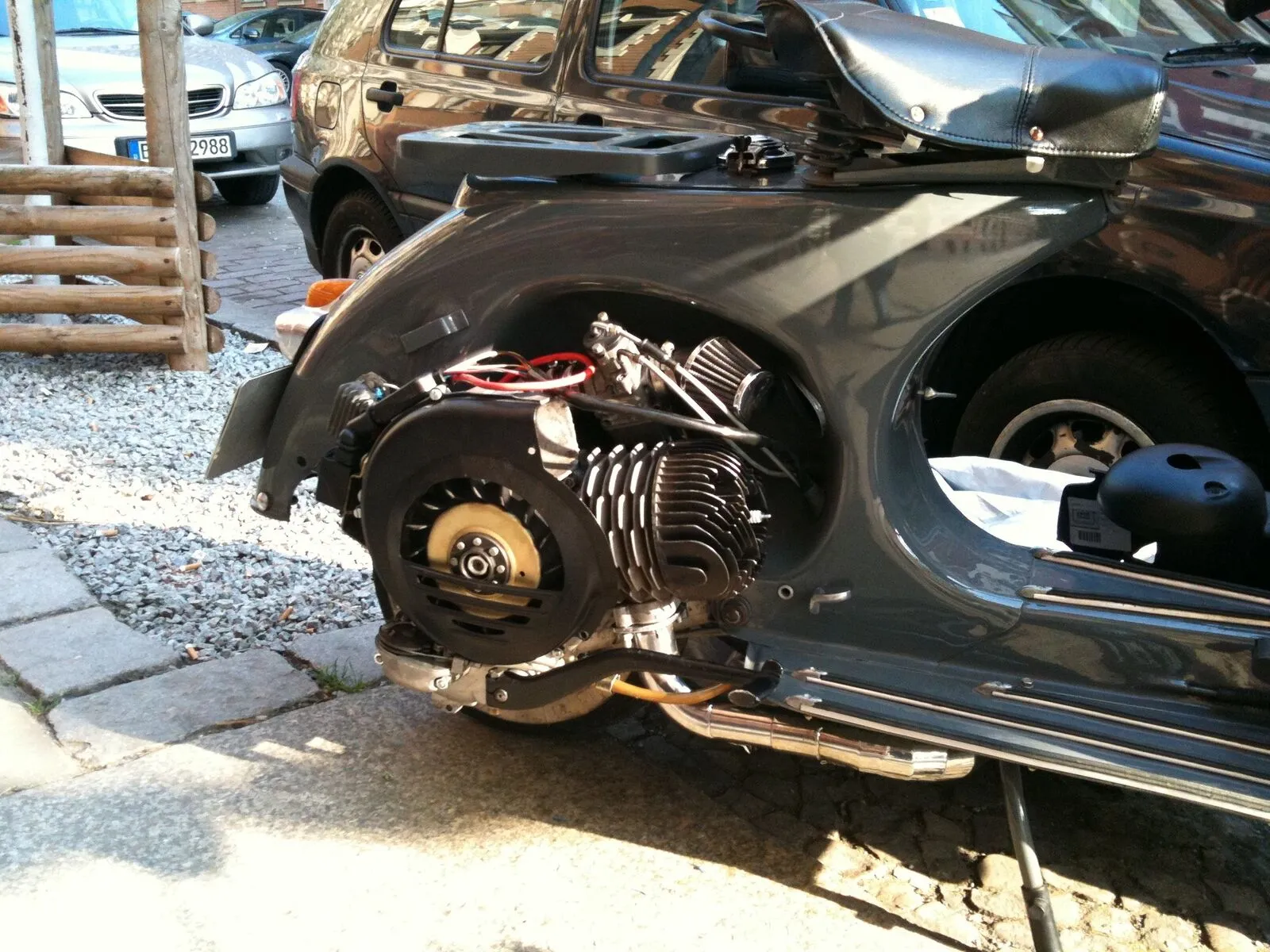 hab mit in meine VNA nen T5- Motor (mit Pilz-Welle) eingebaut. Mallossi-Membran mit Stutzen drauf und nen 30er PHBH Dellorto. Auspuff ist eine ScootRS Tröte und HP4 Lüfter.