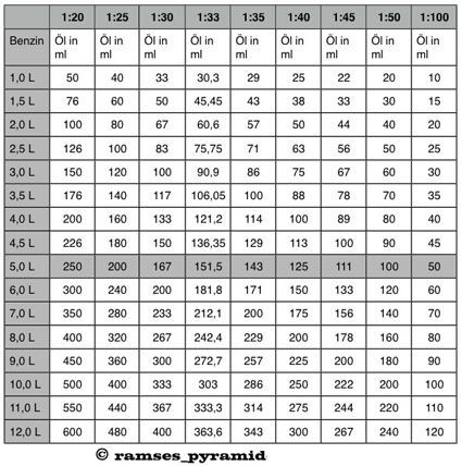 Ich weiß, dass man ein 1:50 Gemisch braucht. Wie genau geht es denn aber? Ich hatte die Idee das 2T Motorenöl in ein kleines 100ml Fläschchen abzufüllen, damit ich immer was dabei hab. So kann ich vorm tanken einfach Öl in den Tank kippen und dann Benzin draufschütten. Dabei kann ich die Benizinmenge jedoch nur grob abschätzen. Ist das problematisch?