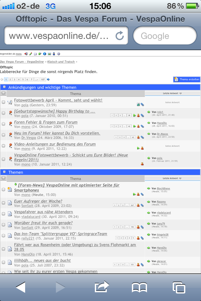 [Foren-News] VespaOnline mit optimierter Seite für Smartphones