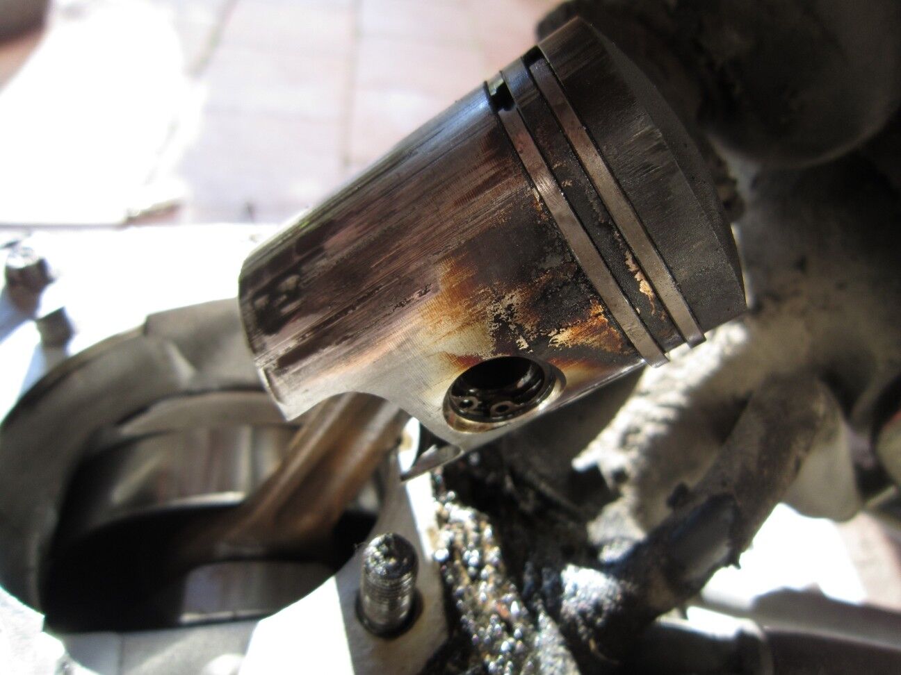Vor einem Monat fuhr ich nach einigen Kilometern einen Berg hoch, und kurz bevor ich an meinem Ziel war, wurde das Motorgeräusch plötzlich... ich würde es als sägend bezeichnen. Oder lautmalerisch: Statt einem "Mööööö" war plötzlich ein "Määäää" zu hören, die Leistung fiel stark ab und schließlich ging sie trotz Gasgeben aus.