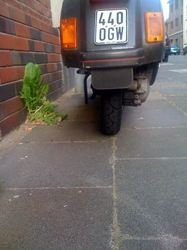 Habe den Eindruck, dass das Hinterrad meiner Vespa etwas schräg steht. Seht ihr das auch oder hab ich nen Knick in der Optik?