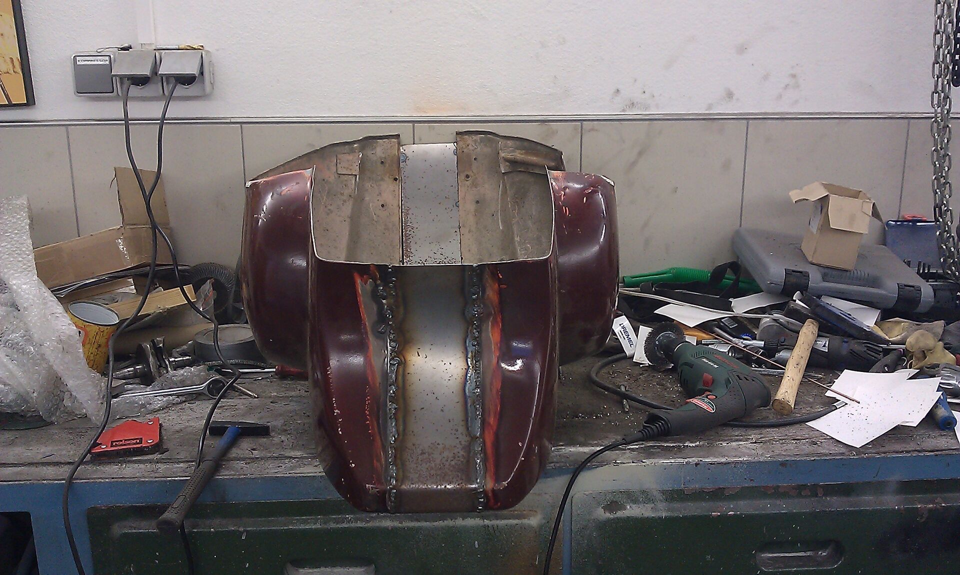 Weiter ging es mit dem dezenten Verbreitern, hab dann 10cm Blechstreifen eingefügt und halt angepasst. Heckleucht eist irgend ein Repro Teil welches sich e perfekt dafür geeignet hat.