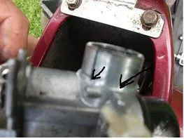 -bei dem vergasser das letzt stück geht nicht ganz rein ( da wo der größere Pfeil hinzeigt ) so das man noch ein kleines loch vom schlitz sieht ( der kleinere Pfeil )