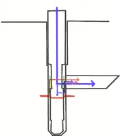 4. Skizze: wenn die Luft die untersten Löcher erreicht bricht der Spritfluss teilweise zusammen