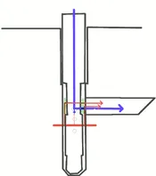 3. Skizze: erhöht sich die Drehzahl weiter wird auch über die unteren Löcher Luft angesaugt