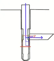 Die weiter nach unten drängende Luft wird jetzt auch über die tiefer liegenden Bohrungen angesaugt und erweitert den Vermischungskragen in die Tiefe gleichzeitig drückt die Luft den Spritspiegel im Mischrohr tiefer und er steigt dafür im äußeren Spalt.