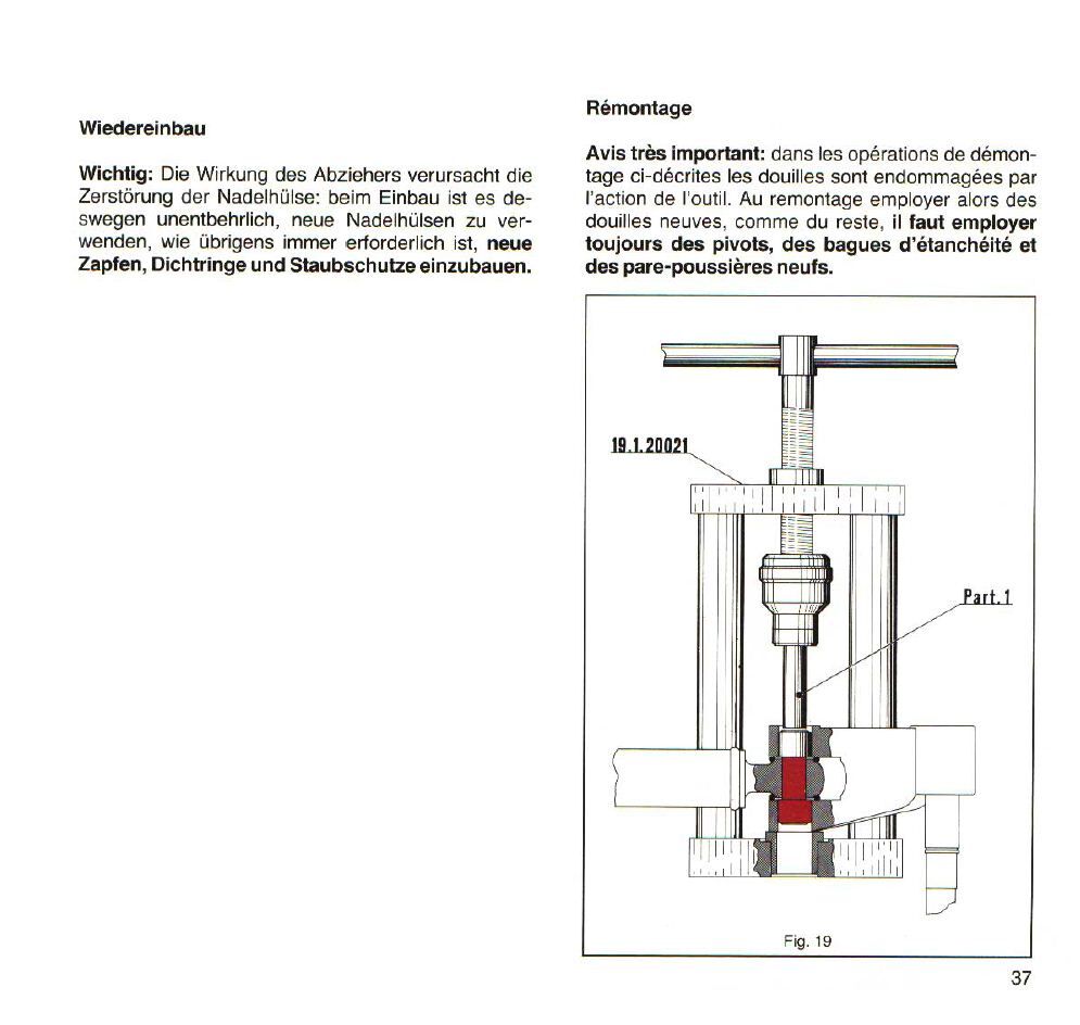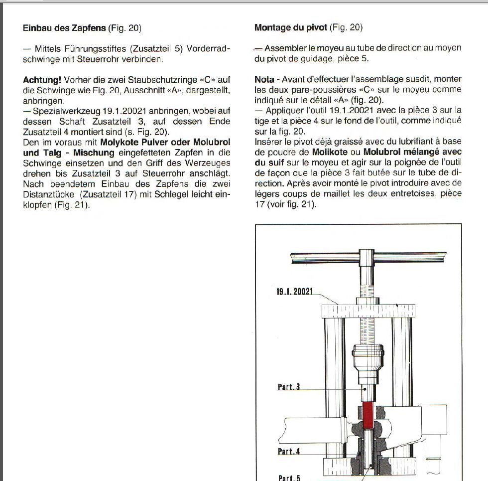 geht auch ohne Spezialwerkzeug mit einem guten geschmiedeten Schraubstock und einem Helfer. Beim Wiedereinbau habe ich den Bolzen gekühlt und das "Auge" erwärmt.