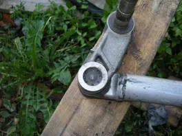 wie bekomme ich die Sicherungsscheibe und die Lager der Schwinge in der Gabel raus?