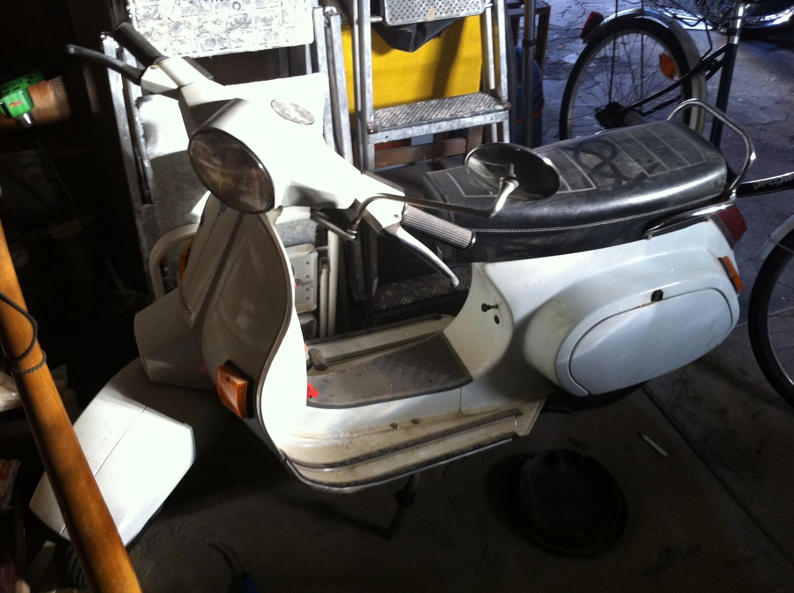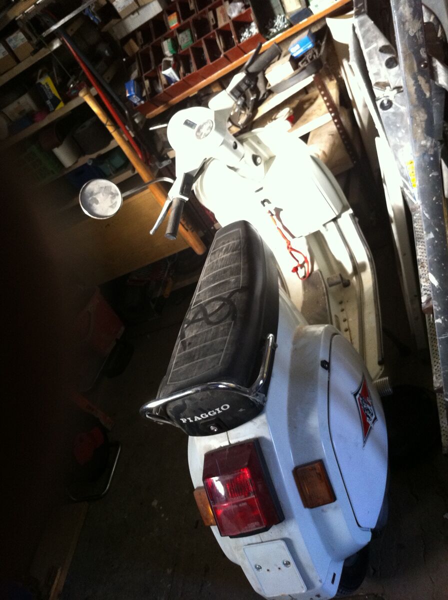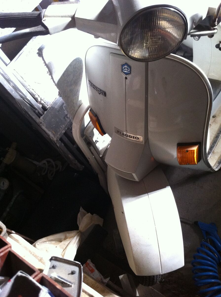 die vespa ist noch komplett original....original papiere..... original lack.... nicht verbastelt.... hier und da ein paar kratzer.... farbe ist weiß... fährt einwandfrei.....