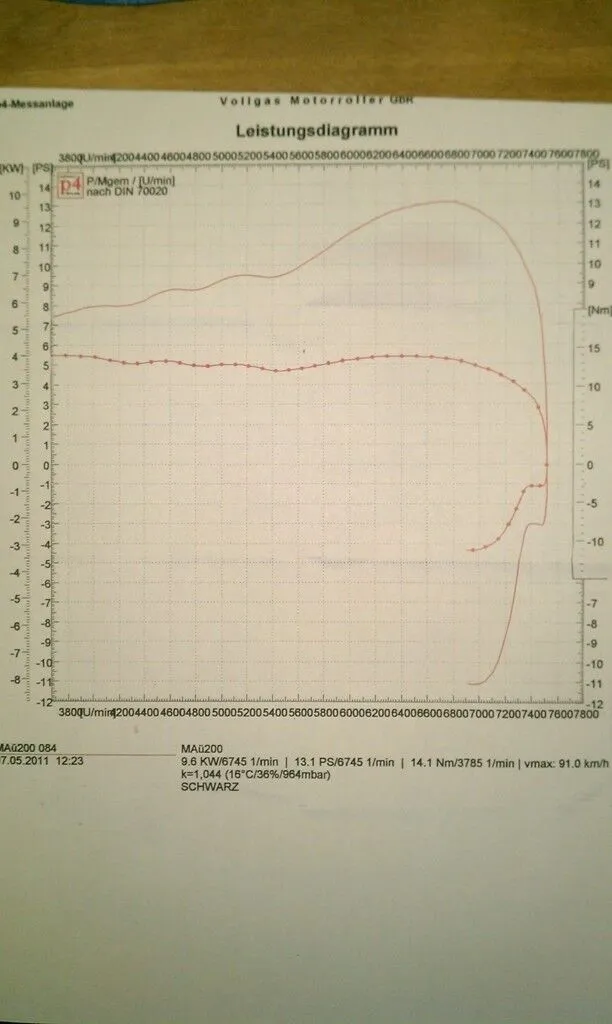 Der Kolben ist richtig rum drin, keine Sorge!Es passt alles, Bedüsung ist korrekt, die Kiste läuft auf der Autobahn weit über 120. Mords abzug und richtig viel Drehmoment...ich hab mir da wohl unbewusst nen Traktor gebaut...man beachte das Drehmoment...14 NM durchs ganze Band...das ist schonmal was.