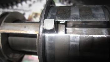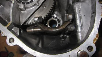 Zu erwähnen ist noch, dass der kleine Sicherungsstift der Schaltgabel konisch ist, d. h. nur in Richtung ausgetrieben werden kann. Das ist eine echte Kack-Arbeit.