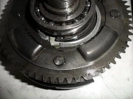 Das große Primärrad mit dem angenieteten Korb ist auf der Rückseite mit einem Seegerring gesichert, damit es nicht Richtung Kupplungsdeckel aus dem Lager rutscht. Hast du den Ring vorher nicht entfernt?