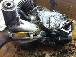Der Motor ist von aussen teilweise gereinigt, und alle Anbauteile zum Teil entfernt.