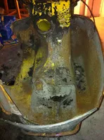 Karosse, Lenkerkopf, Felgen etc. sind bereits beim Sandstrahlen. Diese werden Mitte kommender Woche fertig sein.