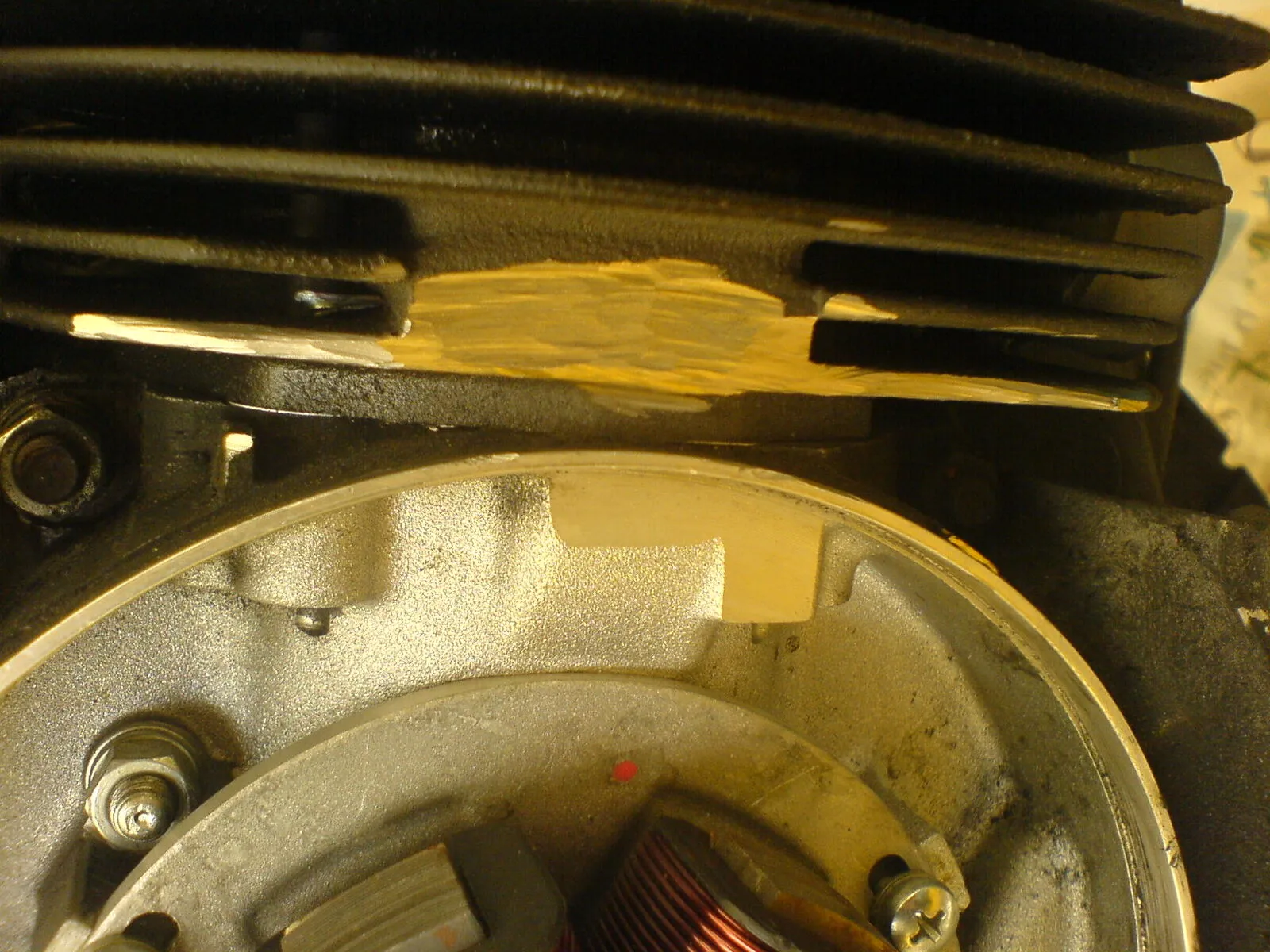 Jedenfalls hatte ich mich für einen simplen Plug and Play entschieden und wollte mir zunächst nicht mal die Mühe machen, das Polrad überhaupt abzuschrauben und auch beim Vergaser hab ich nur den Düsenstock gewechselt, sonst nix. Hätte auch alles prima funktioniert, auch wenns mit den Stehbolzen etc. ziemlich eng ist, aber naja. (Ist halt schon lang her, dass ich das gemacht habe... ![]()