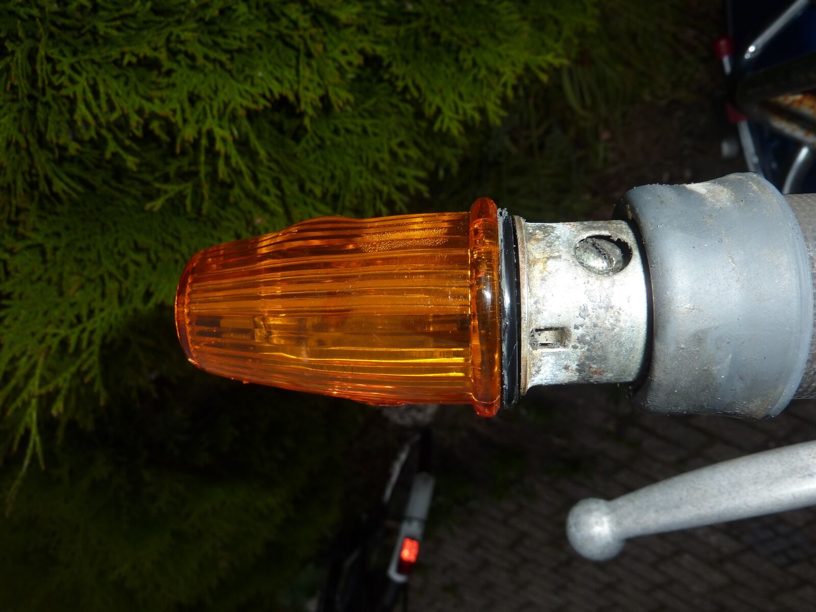 An diesen Innenrohren werden dann die Blinker befestigt. Dabei ist zu beachten das die Außenrohre von Gas- und Schaltgriff unterschiedlich sind, haben auch die Innenrohre unterschiedliche Länge. Das Innenrohr muß genau im die Länge der zu den Blinkern gehörenden Kappe aus dem Außenrohr ragen. Die Kappe wird auf des Innenrohr gesteckt, der Blinker in das Innenrohr und dann die Befestigungsschraube, durch die Öffung in der Kappe, durch das Innenrohr mit dem Blinker verschraubt. Die Kappe muß sich über der Schraube drehen lassen.