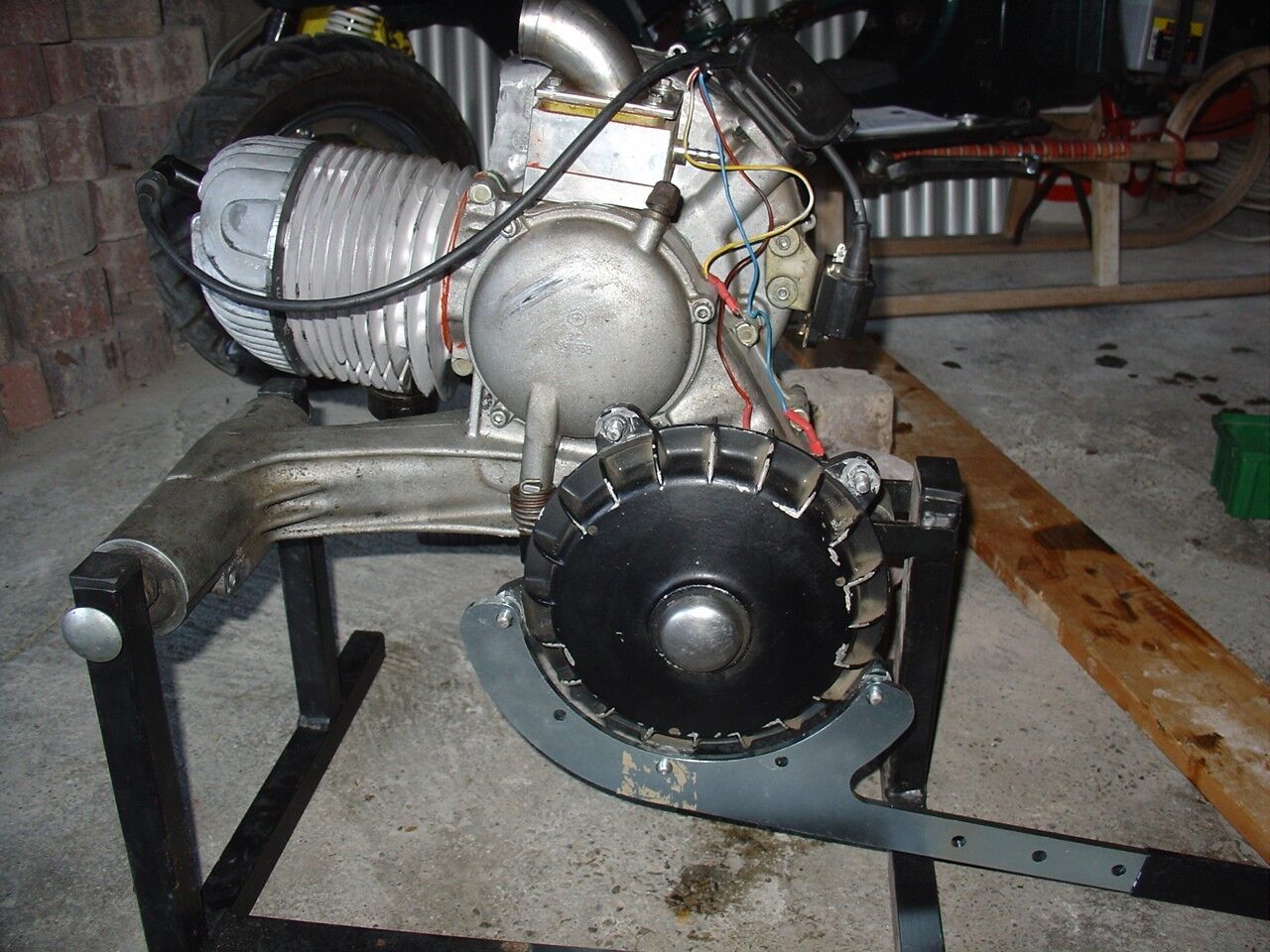 Hinterradbremse mit großer Schraubzinge fixieren, Gang einlegen, auf die Vespa bauchlinks legen, Ratsche/Drehmomentschlüssel mit Staubsaugerrohr verlängern, und feuer...Mutter gelöst.