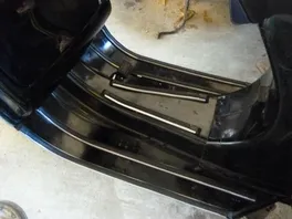Beide Felgen wurden geschliffen und Lackiert, das Handschuhfach ist vom Lackieren wieder da und angeschraubt und die Trittleisten sind dran.