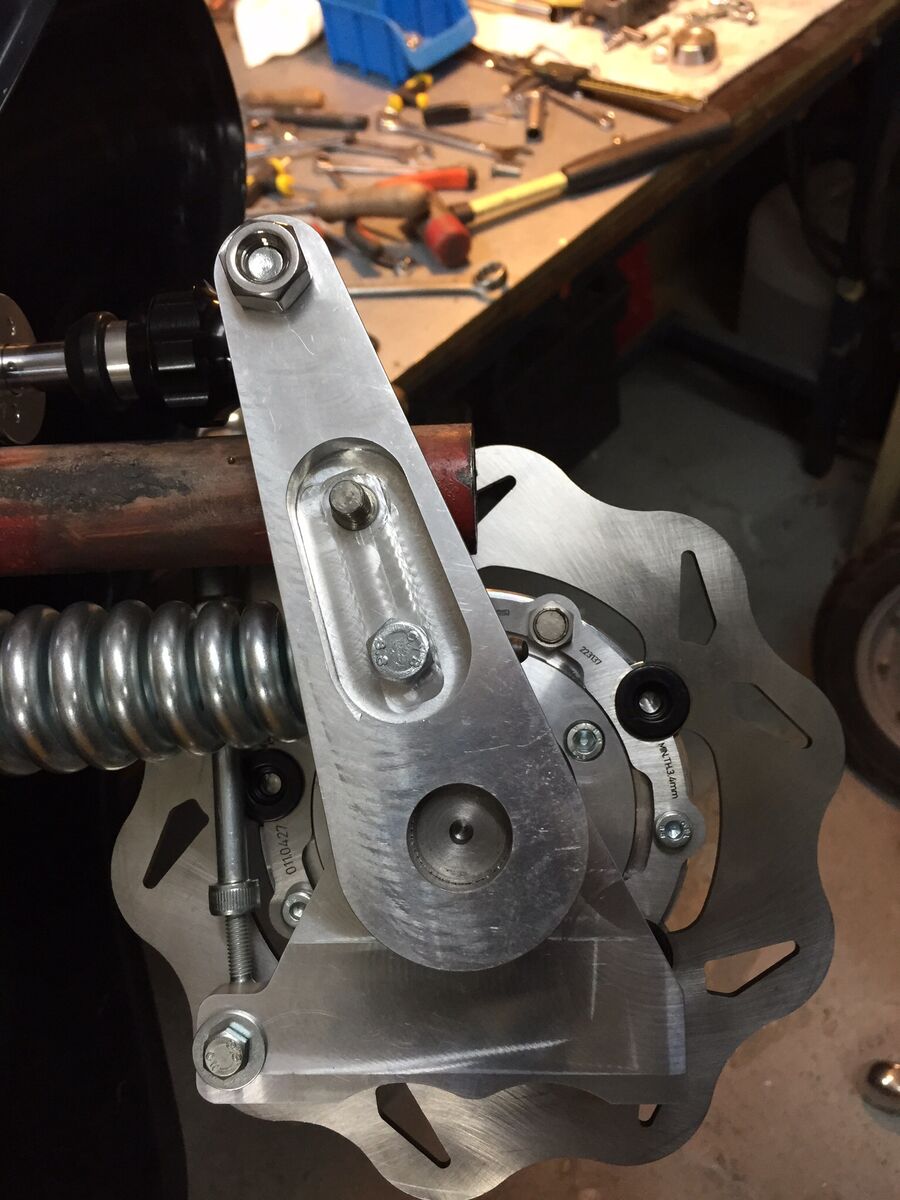 Die Schwinge ist verpresst und die letzten Schweissereien sind erledigt.. Zeit, einmal alles zusammen zu bauen. Doof nur dass der Winkel der Schubstange so nicht funktioniert. Jemand, der sich besser auskennt, als ich hat mich darauf aufmerksam gemacht, dass das so alles Käse ist. Also noch mal nachgedacht und ein wenig rumprobiert, jetzt gehts.