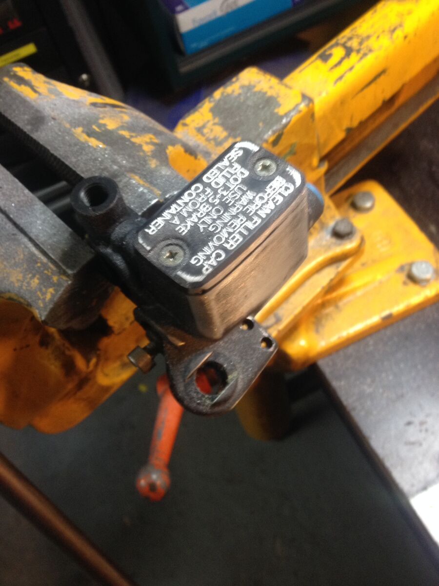 Ach ja Scheissarbeit... Die Brembo Bremspumpe gibt es auch nur in Mattschwarz und das wird nicht zum Konzept passen. Glattschleifen 80er, 150er, 240er Körnung und dann mit Scotch Vlies schleifen, zum Schluss polieren und hoffen, dass es nicht zu wellig geworden ist...