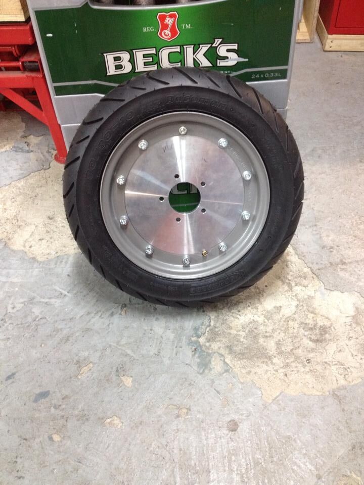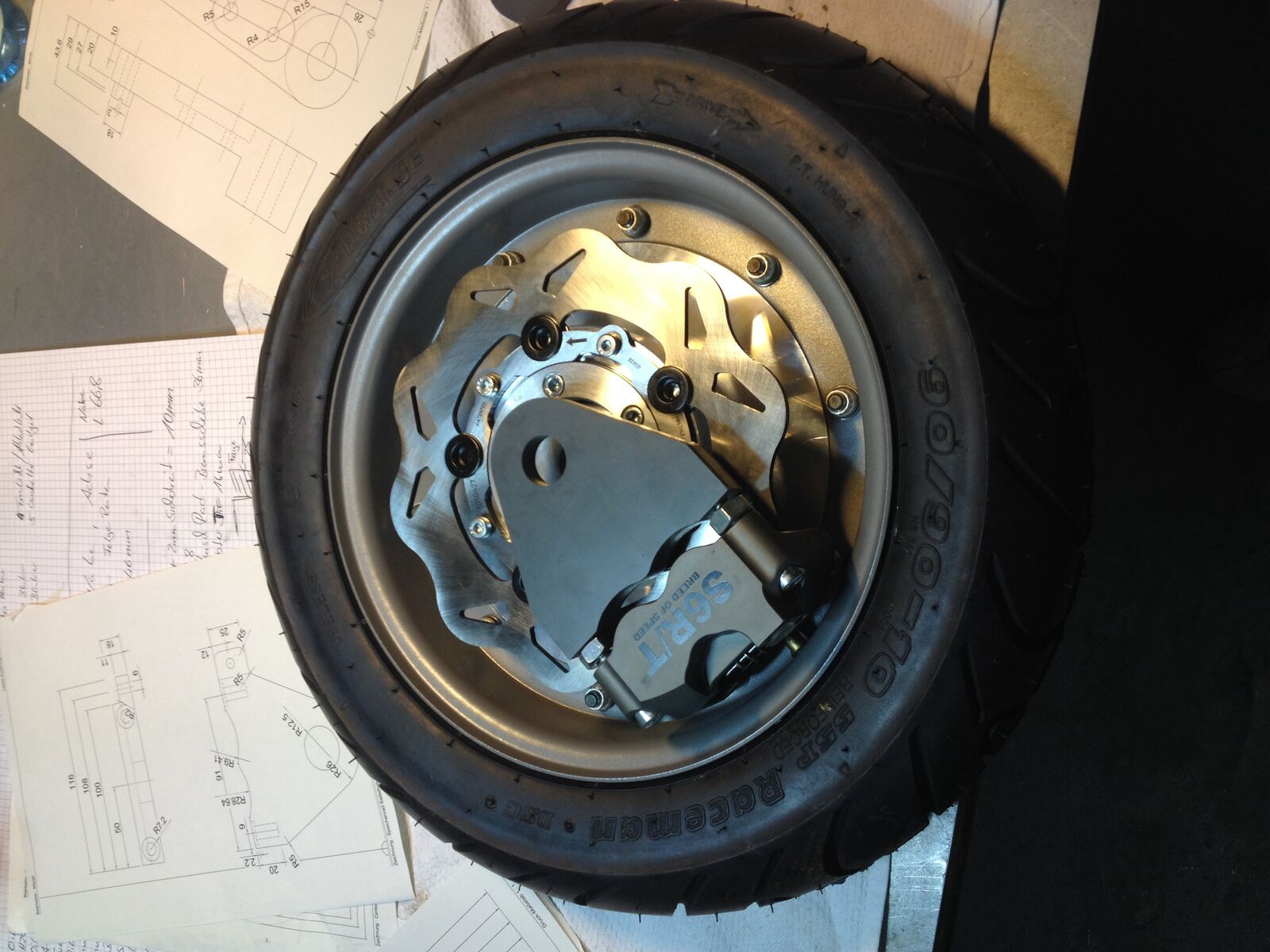 Heute bin ich Nabe und Bremsscheibenadapter angegangen. Mir gefällt's...