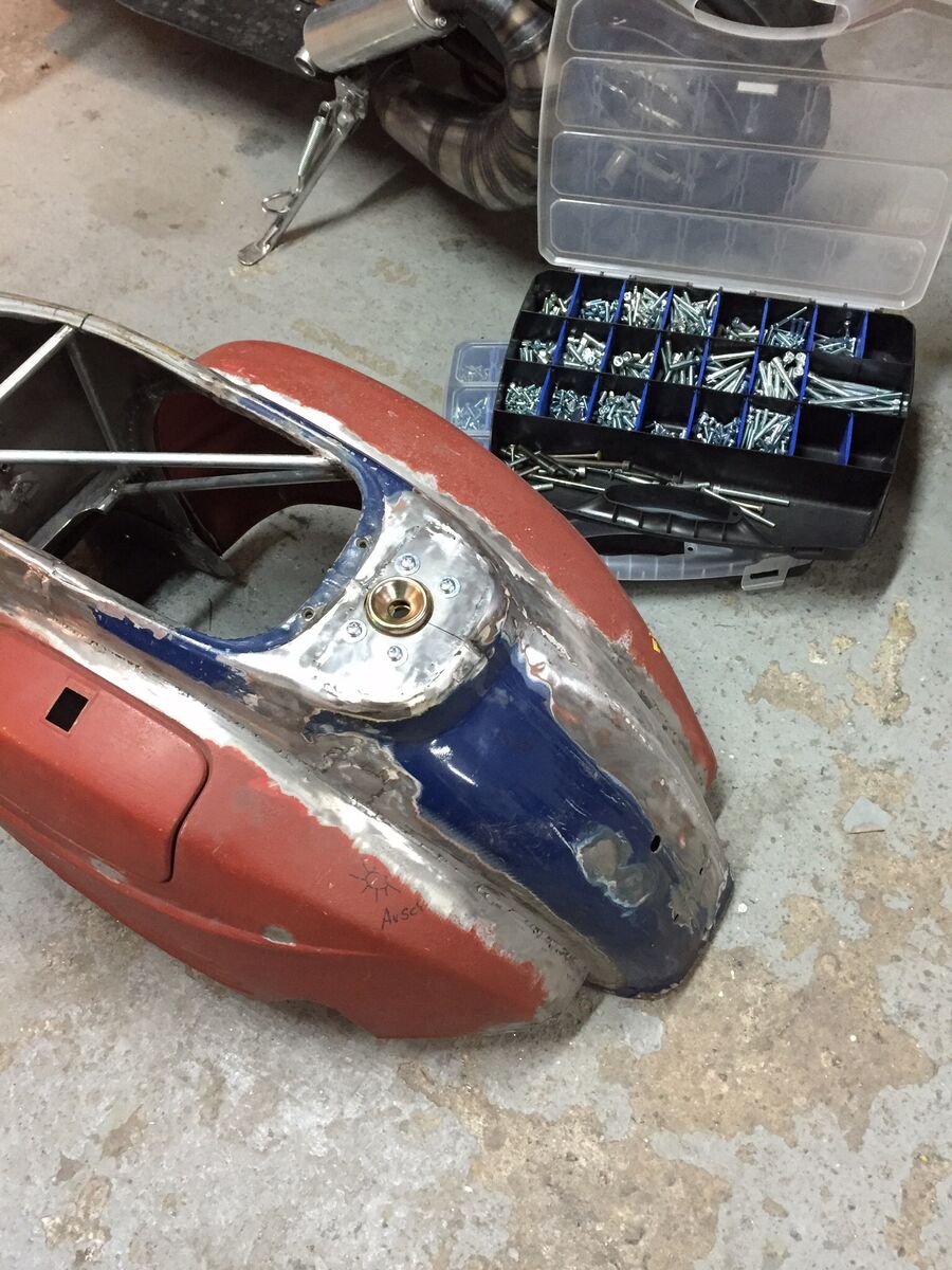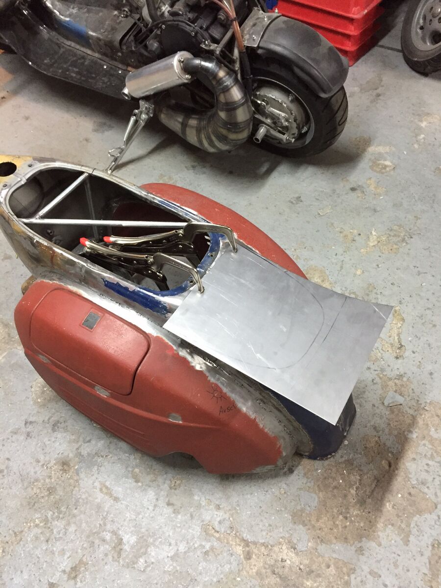 In der Zwischenzeit ist auch der Dämpfer geliefert worden.Ich musste noch ein wenig an der Haube wegnemen, aber besser hätte es nicht gehen können. Ausgezeichnetete Arbeit von Pipedesign!