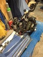 Ich vermute eine zu magere Abstimmung im oberen Drehzahlbereich (die Nadel ist nicht optimal) und das der ZZP nicht richtig stimmt. In letzter Instanz werde ich wohl aber um einen neuen Auspuff nicht herum kommen.Erschreckend fand ich allerdings, dass der Rüttelplattenantrieb ALLE Motorbefestigungsbolzen gelöst hat!