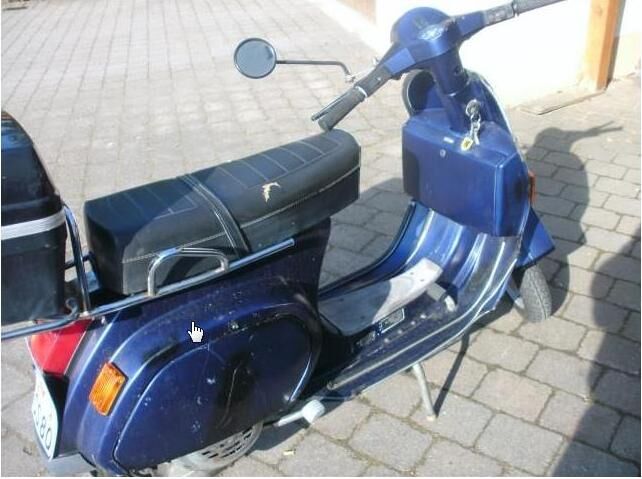 Also die Vespa hat 21.000 km auf der Uhr, die Gänge lassen sich nicht mehr richtig schalten! Zudem ist die Vespa mal auf dem Anhänger umgefallen und daher am Bodenblech vorne rechts und an der Seitenbacke rechts etwas eingedellt! Und wie man sieht ist der Lack nicht mehr im besten Zustand! ![]()