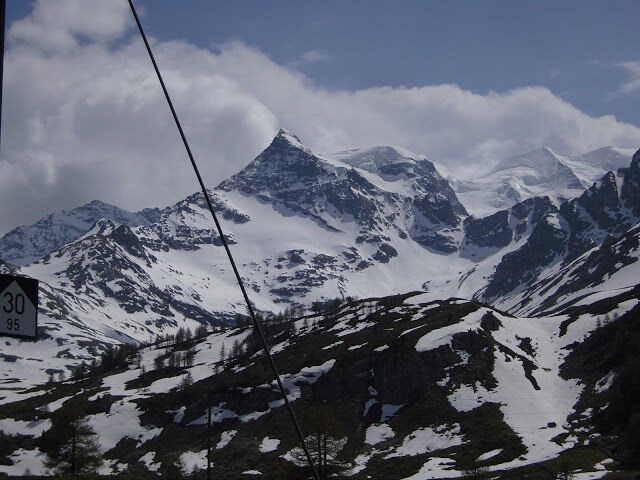 Die Stilfser Pass war aber zu wegen Schneefall, also zurück in die Schweiz und durch diesen urigen, langen, einspurigen Tunnel. Vorbei an St. Moritz nach Österreich.