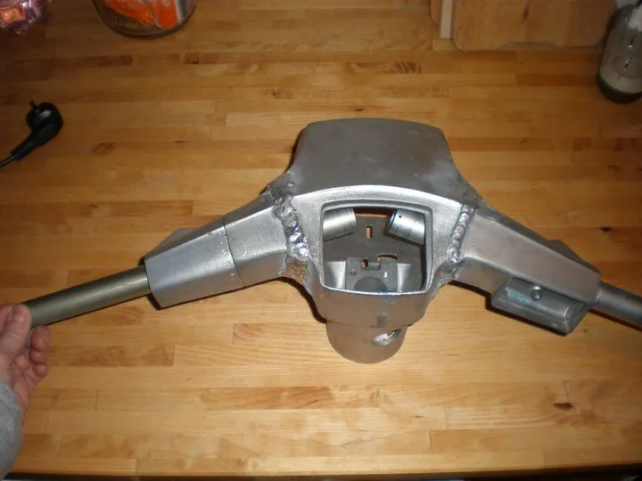 denke mal, beim v50 lenker wirst du auch etwas vom tacholoch weg bleiben müssen da du es sonst beim schweißen kaputt machst was nicht toll aussieht. weiß bei der v50 nich genau wie es abläuft aber ich denke du wirst oben alu bleche einsetzen müssen da du die griffe ja abkippst.