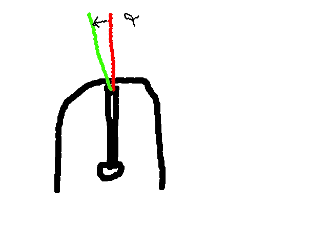 Meine ist, denke ich, ganz leicht in die eingezeichnete Richtung verbogen, also kleines, positives alpha. Aber wie kann ich des am besten feststellen, ob sie wirklich verzogen ist?