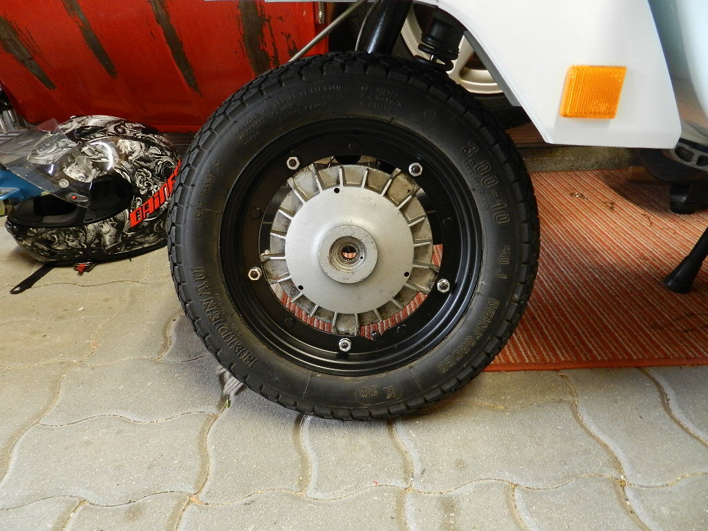 Stehen tut sie hinten&vorne auf Heidenau k38, hab ich in der Werkstatt mit gutem Profil liegen gehabt, also warum nicht. Bremstrommel hab ich eine alte oben, schöner wird die Trommel nicht, leider. (Bild 2)