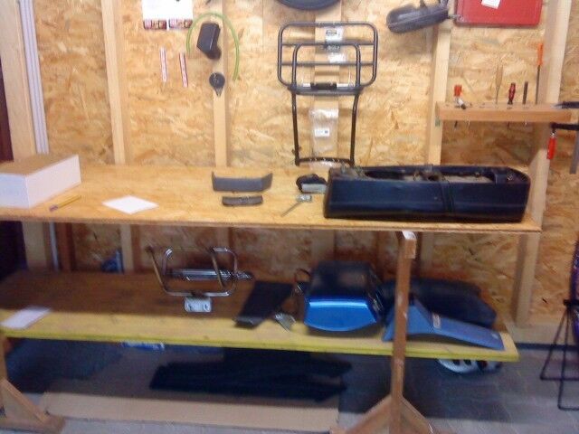 Der Lack wird noch überlegt, aber wahrscheinlich ein sehr helles Blau ins Weiß, mit ner hellbraunen Monositzbank von ner V50.
