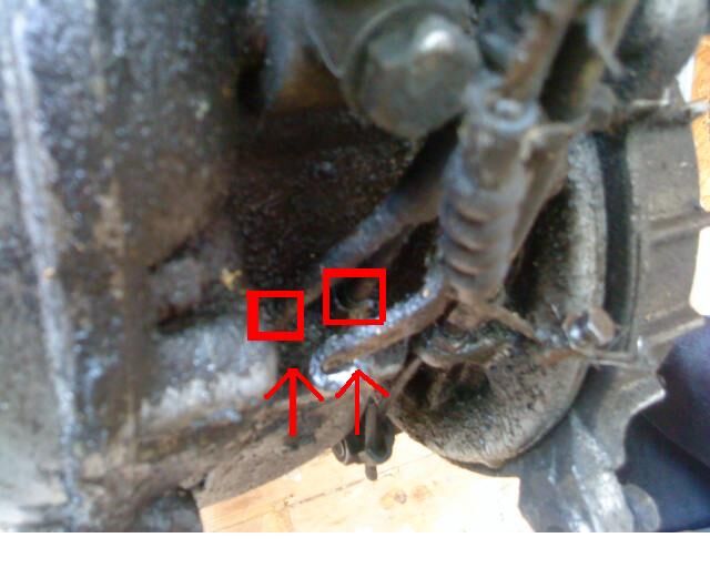 beim Anfang des linken Pfeils ist die Schraube der Schaltrastenabdeckung.