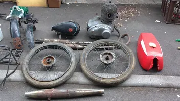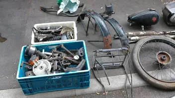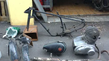 Habe heute eine unserer garagen entrümpelt unter anderem hat mein vater in dieser garage ein Patria Wkc Solingen Ilo oder so was vor jahren mal gebunkert das er irgendwo her bekommen hat leider auseinader gebaut in teilen weiss auch noch nicht ganz genau in wie weit die teile komplett sind motor ist auf jedenfall schonmal keiner bei =(