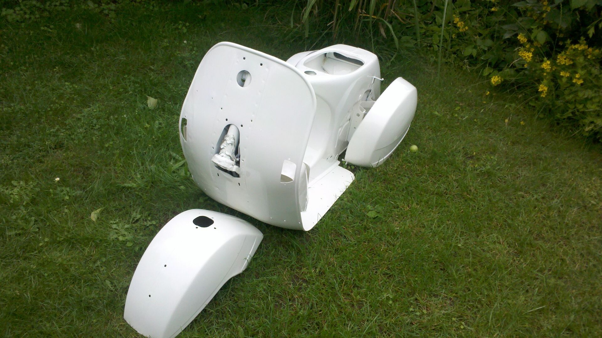 Das Blech gestrahlt und mit Pulver beschichtet, ich weis weiß ist keine Farbe hat wohl mehr sentimentale Gründe ![]()
