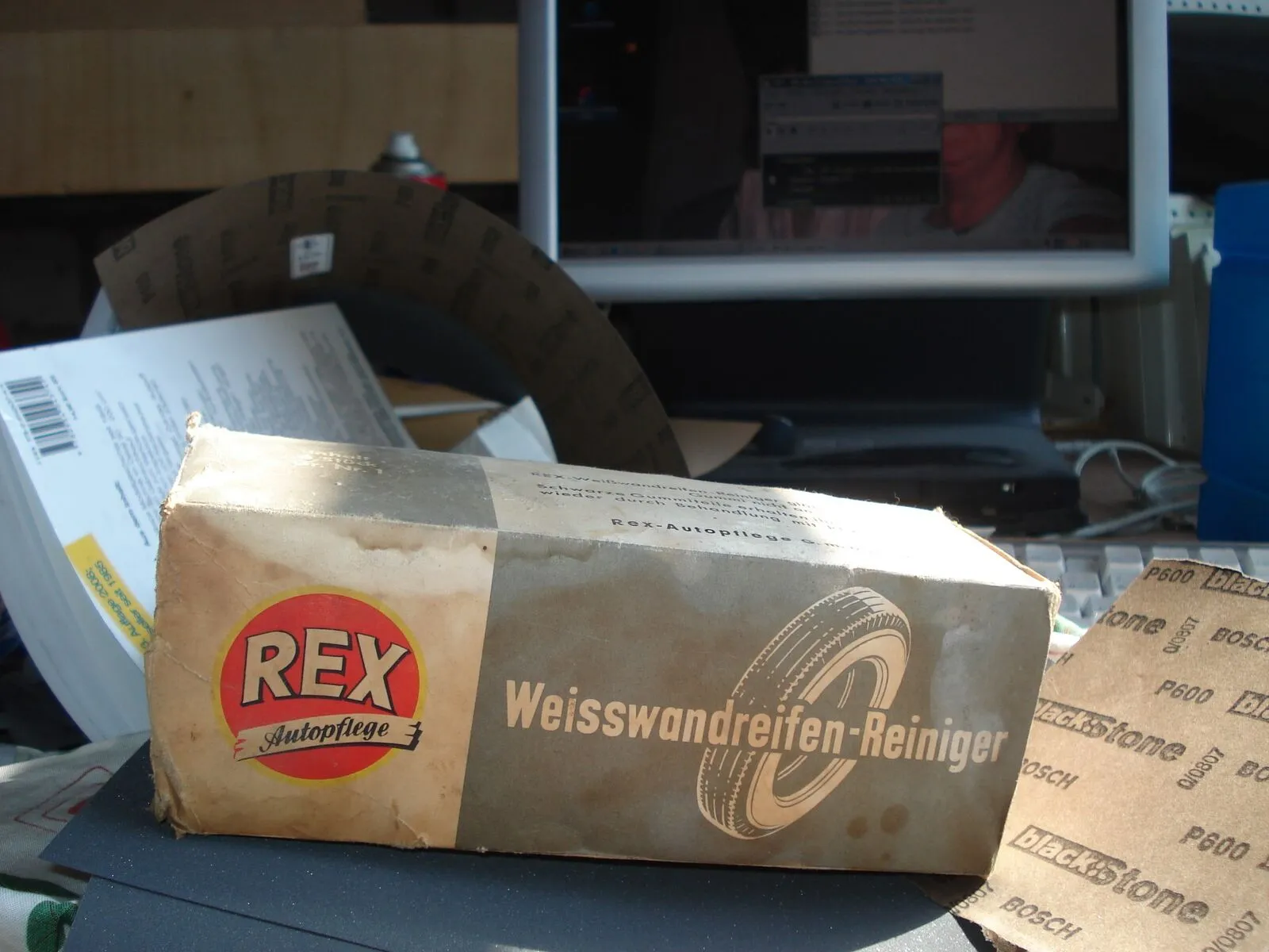 Ich habe nach dem polieren das verdreckte Politurtuch für die Reifen verwendet... plötzlich die Überraschung, das ging mit leichter Schleifpolitur gut sauber. Meines erachten sind da keine Lösungsmittel wie in Scheuermilch, Bremsenreiniger, WD40, Benzin oder Fenterreiniger drin.