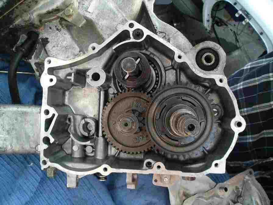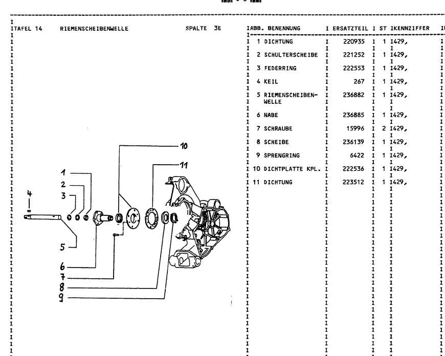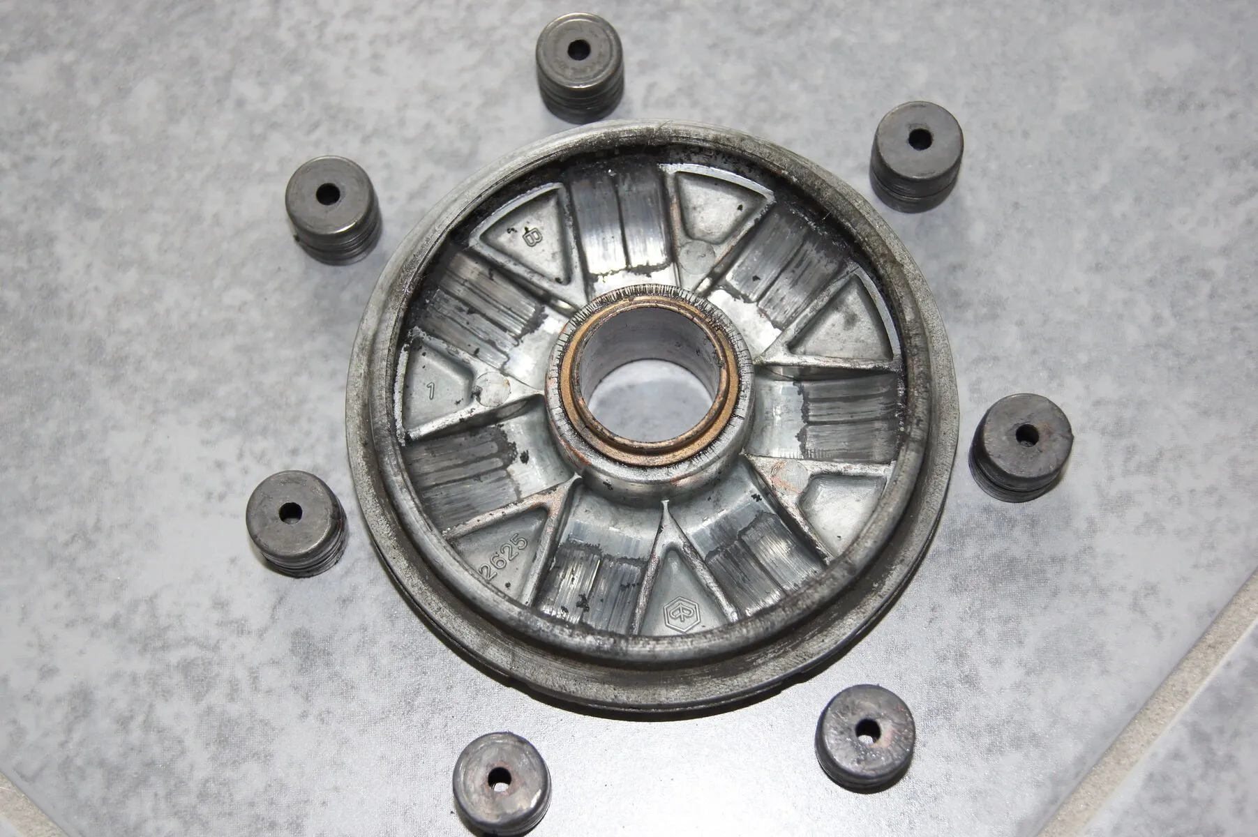 Beim Abnehmen der oberen äußeren Riemenscheibe purzelten mir dann die folgenden Bauteile entgegen: