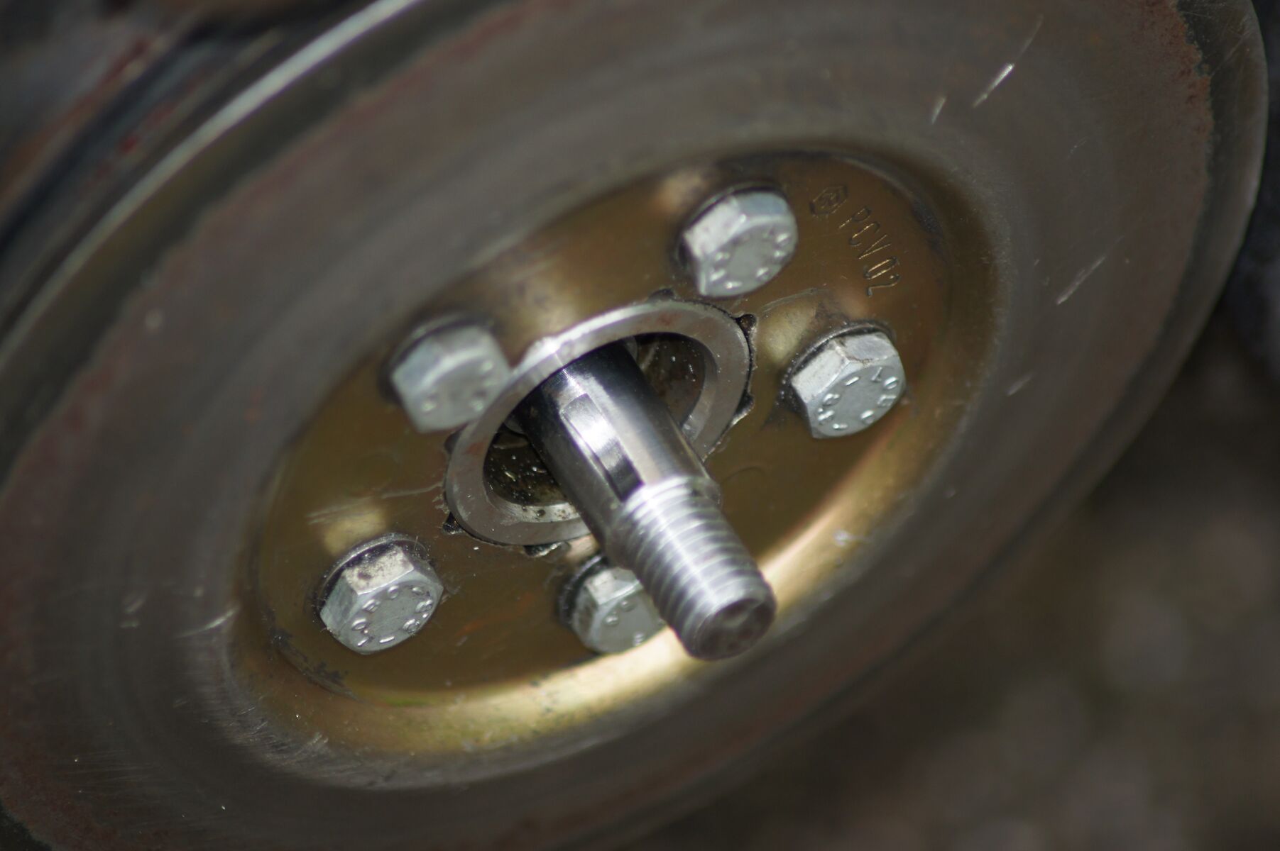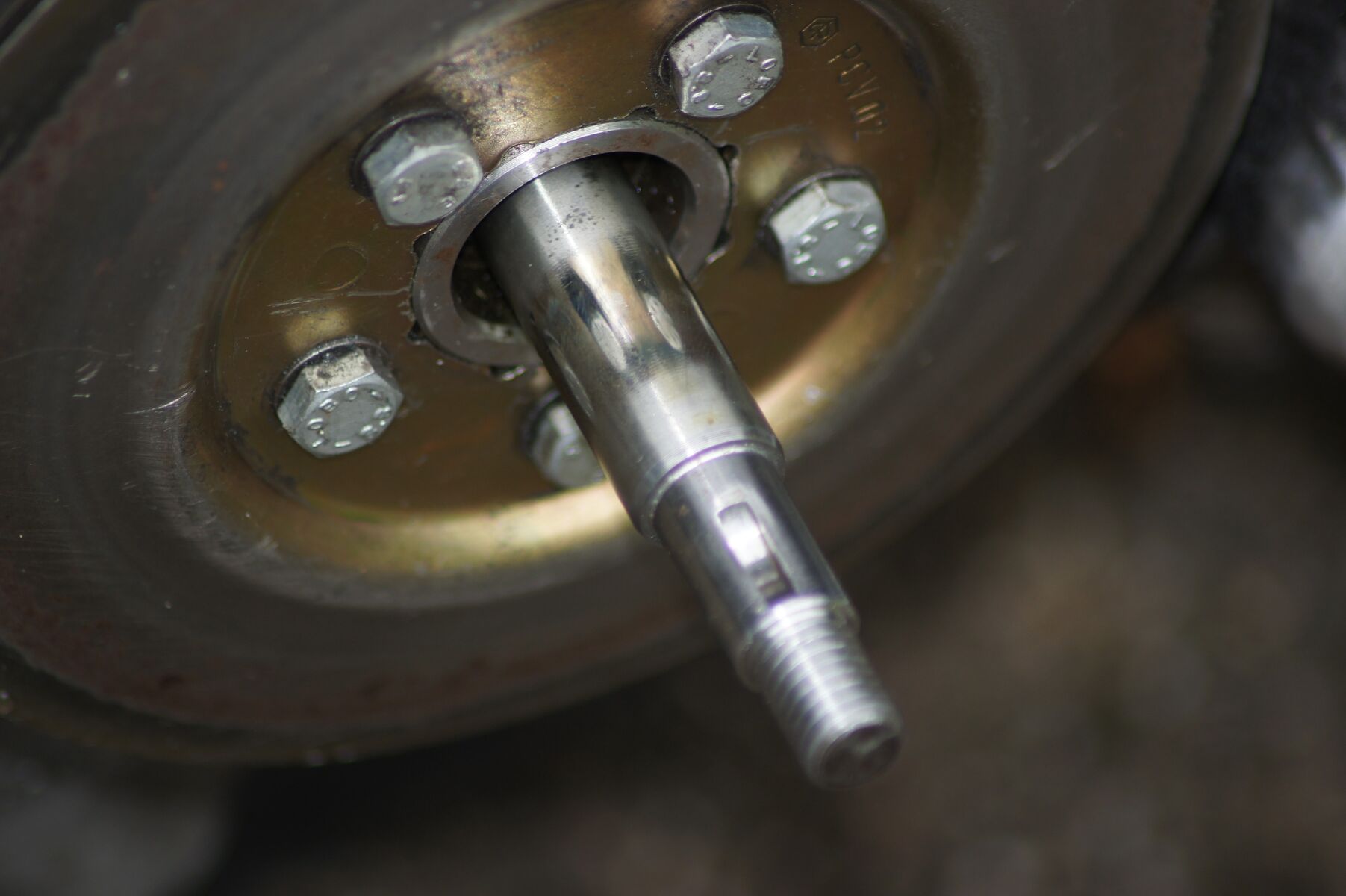 Wollte auch die untere äußere Riemenscheibe lösen um den Zustand der Kupplung zu überprüfen (Mutter ebenfalls mit Schlagschraube gelöst).